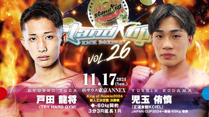 トライハードジムから戸田 龍将がStand upプロフェッショナル vol.26「King of Rookie 2024」への出場します!